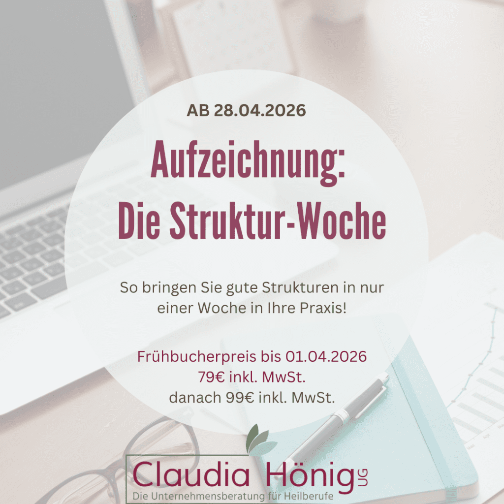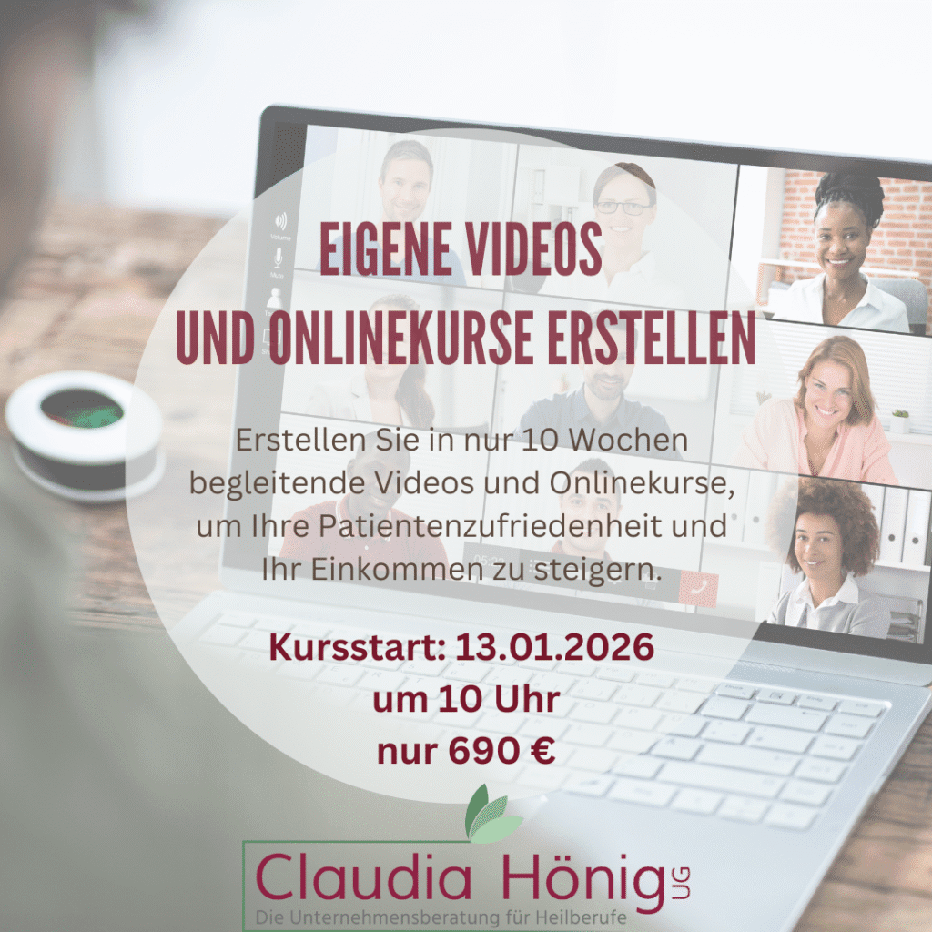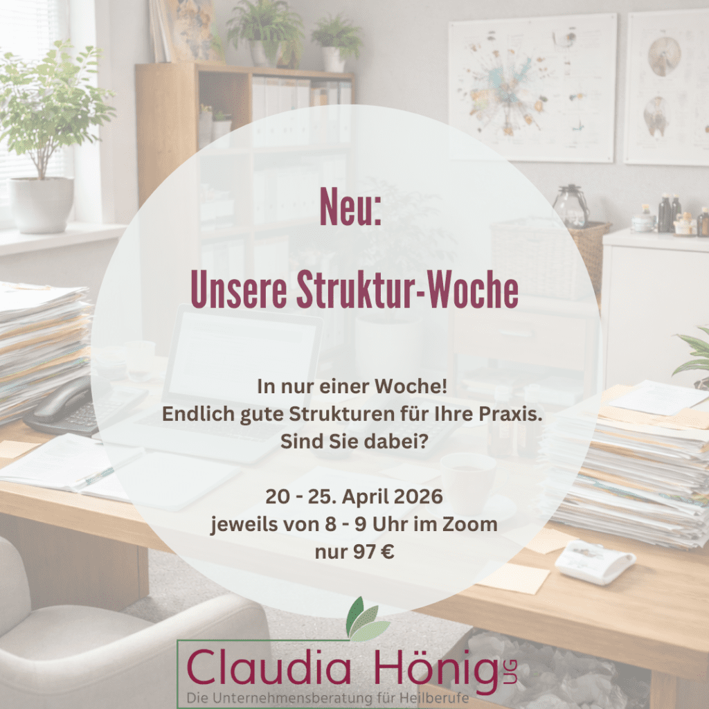 EXCELLENT Based on 61 reviews Posted on Sophie FriedelTrustindex verifies that the original source of the review is Google. Claudia Hönig hat mir geholfen, meinen Traum von einer eigenen Praxis Wirklichkeit werden zu lassen. Ihre Beratung und Unterstützung haben mir nicht nur Hoffnung gegeben, sondern auch das Vertrauen in mich selbst gestärkt. Seit unserer Zusammenarbeit ist meine Arbeit spürbar professioneller und strukturierter geworden. Claudia hat ein unglaubliches Gespür dafür, das Potenzial in einem zu erkennen und die richtigen Impulse zu setzen. Ich kann sie jedem empfehlen, der/die mit der Praxis Gründe einen (und auch mehrere) Schritte weiterkommen möchte. Danke ClaudiaPosted on Judith Beutel-SiebertzTrustindex verifies that the original source of the review is Google. Claudias umfassende Fachkompetenz in allen Bereichen, die meinen Praxis- und Seminarbetrieb betreffen, ist unschätzbar wertvoll und unverzichtbar für mich geworden. Durch ihre breite Aufstellung von Buchhaltung, Marketing, Kundengewinnung, Newsletter, Webseite bis hin zur Struktur und Organisation ist sie zu jedem Zeitpunkt die richtige Unterstützung - und immer mit ganz viel Spaß, Humor und Empathie!Posted on Christina FreundTrustindex verifies that the original source of the review is Google. Claudia Hönig und ihre Begleitung ist ein riesengroßes Geschenk für alle Heilpraktiker,Praxen und Gesundheitsberufe.Mit ihrer absolut fachlichen Kompetenz,Wissen,individueller Begleitung und liebevollen menschlichen Art kann ich jedem in diesem Bereich Claudia nur wärmstens empfehlen.Sie holt einen da ab wo man gerade steht,ist rechtlich auf dem neusten Stand und bietet darüber hinaus ein so wertvolles Angebot an Kurse,Workshops,Fragerunden etc.Ich wünschte mir, ich hätte Claudia schon früher kennengelernt,da hätte ich mir einges vereinfacht.Ich habe einige Berater gehabt,aber Claudia ist einzigartig in ihrem Tun und ich habe bisher auf diesem Gebiet niemand Vergleichbarem mit diesem Gesamtknowhow und Menschlichkeit kennengelernt.Danke für Alles Liebe Claudia!Posted on Praxis SerretTrustindex verifies that the original source of the review is Google. Frau Hönig hat uns beim kostenlosen Erstgespräch schon so viele Infos gegeben, dass wir all unsere Fragen in kurzer Zeit beantwortet hatten. Einen Folgetermin werden wir auf jeden Fall vereinbaren. Frau Hönig war super lustig, wusste genau worauf es ankommt und hat uns blitzschnell richtig gut geholfen. Vielen Dank nochmal!Posted on Bianca Rudroff-HeßlingerTrustindex verifies that the original source of the review is Google. Kompetenz trifft Empathie! Liebe Claudia herzlichen Dank für deine bisherige Unterstützung. Ich kann nur jedem empfehlen, der am Anfang seiner Praxisgründung steht sich mit Claudia auszutauschen. Ich habe mein Lehrgeld durch falsche Informationen bereits gezahlt, aber nun weiss ich zum Glück, an wen ich mich wenden kann und bin über diese Erfahrung mehr als dankbar. Es fühlt sich einfach nur gut an, dich an meiner Seite zu haben und ich freue mich auf unsere weiteren Schritte bezüglich meiner Praxisgründung.Posted on Nadine PangratzTrustindex verifies that the original source of the review is Google. Vielen Dank für die kompetente, umfassende und freundliche Unterstützung.Posted on Heike MaurathTrustindex verifies that the original source of the review is Google. Ich bin wirklich total begeistert von Claudias Arbeit. Sie hat auf fast jede Frage eine Antwort oder hat mir jemanden vermittelt, der Fachmann/frau ist. Bei ihrer liebenswürdigen Art fühlt man sich gerade als Therapeut besonders wohl. Der Marketingkurs letztes Jahr ist eigentlich für jeden HP oder Therapeuten ein muss. Also nur keine Hemmung, es lohnt sich.Posted on Nela IvankovićTrustindex verifies that the original source of the review is Google. Ich kann auch die Unternehmensberatung von liebe Frau Claudia Hoenig für Heilpraktiker Psychotherapie wärmstens empfehlen. Frau Hoenig hat mich bei der Gründung meiner Praxis mit großer Kompetenz und viel Einfühlungsvermögen unterstützt. Sie nimmt sich Zeit für jede Fragestellung und entwickelt zusammen mit mir die individuelle und maßgeschneiderte Lösungen. Besonders beeindruckt hat mich ihr außergewöhnliches Engagement! Ihre Informationen sind gerade für mich von unschätzbarem Wert, besonders in der Anfangsphase, da sie wertvolle Orientierung und Struktur bieten. Auf ihrer Website gibt es zudem zahlreiche hilfreiche Ressourcen wie Trainingsvideos, Online-Webinare, Kurse und Workshops zu Themen wie Marketing, Praxismanagement und Buchhaltung. Ich bin Frau Hoenig sehr dankbar für ihre hervorragende Unterstützung und wünsche ihr weiterhin viel Erfolg!Posted on Verena JörißenTrustindex verifies that the original source of the review is Google. Die Unternehmensberatung für Heilberufe von Frau Hönig kann ich meinen Kollegen und Kolleginnen sehr empfehlen.Frau Hönig bietet für jede Fragestellung empathische und höchst fachkundige Unterstützung. Sie erarbeitet zusammen mit Ihren Klienten Konzepte, die auf die individuell vorhandene Basis aufbauen. Ganz außergewöhnlich ist ihr großes Engagement in unterschiedlichen Gruppen und Foren mit der Zielsetzung des „Empowerments“ eines jeden. Hier gibt es auch regelmäßig kostenfreie Informationen, die gerade budgetorientierten Start-ups in der ersten Zeit helfen und Struktur geben. Wenn man auf Frau Hönigs Website stöbert, findet man u.a. Trainingsvideos, Live-Webinare, Kurse und Workshops zu unterschiedlichen Themen wie zum Beispiel Marketing, effiziente Praxisführung, Buchhaltung (- es gibt sogar einen Buchhaltungs-Club :o) -) und vieles interessantes mehr. Ich wünsche Frau Hönig weiterhin viel Erfolg und Freude in ihrem Tun und bedanke mich für die tolle Unterstützung!Posted on Klaus KatzerTrustindex verifies that the original source of the review is Google. Vielen Dank für die sehr kompetente, faire und sympathische Durchführung des