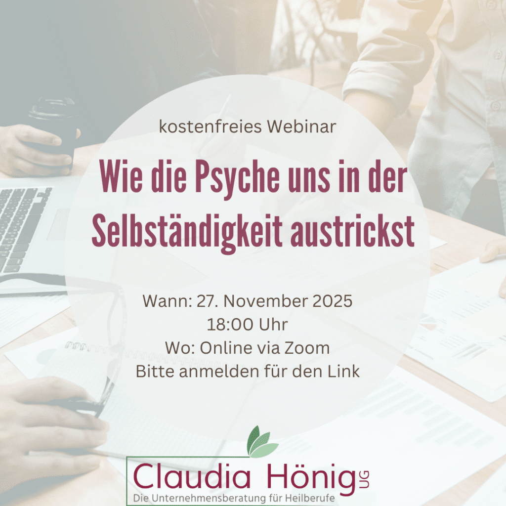 In diesem Webinar schauen wir gemeinsam darauf, wie die Psyche uns austrickst und welche typischen inneren Stolperfallen es in der Selbständigkeit gibt.